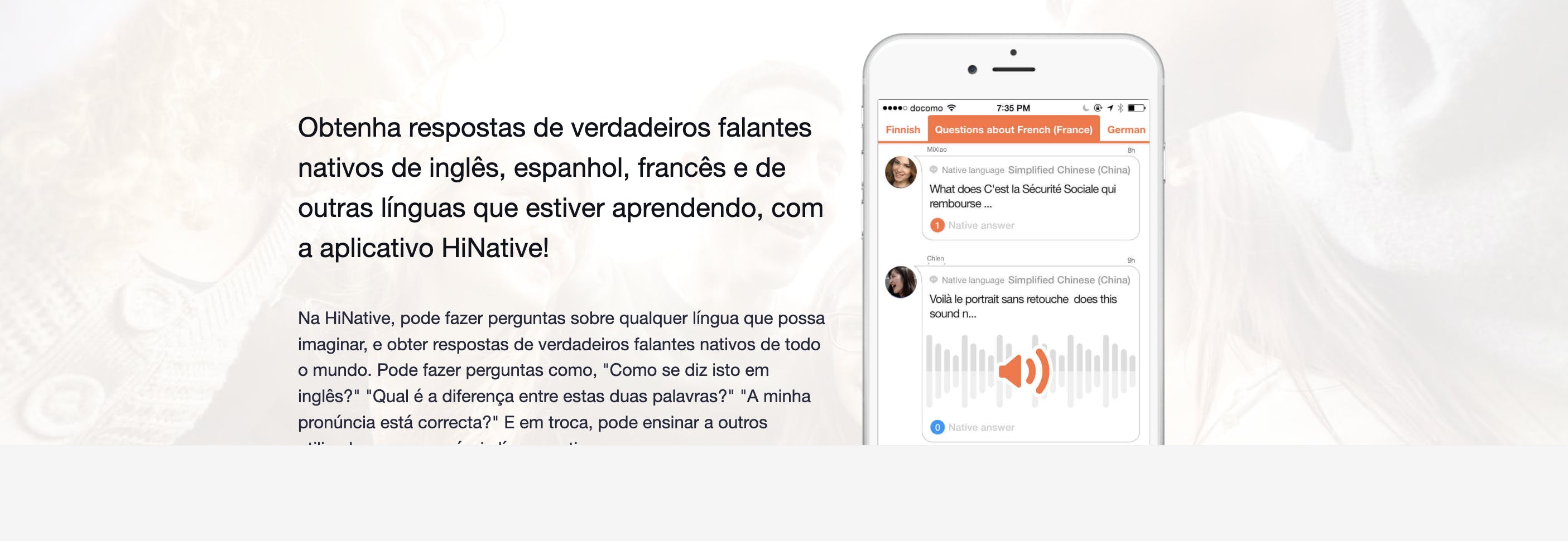 HiNative é um app de perguntas e respostas criado para estudantes de idiomas que buscam ajuda com escrita, pronúncia e tradução de palavras e frases.