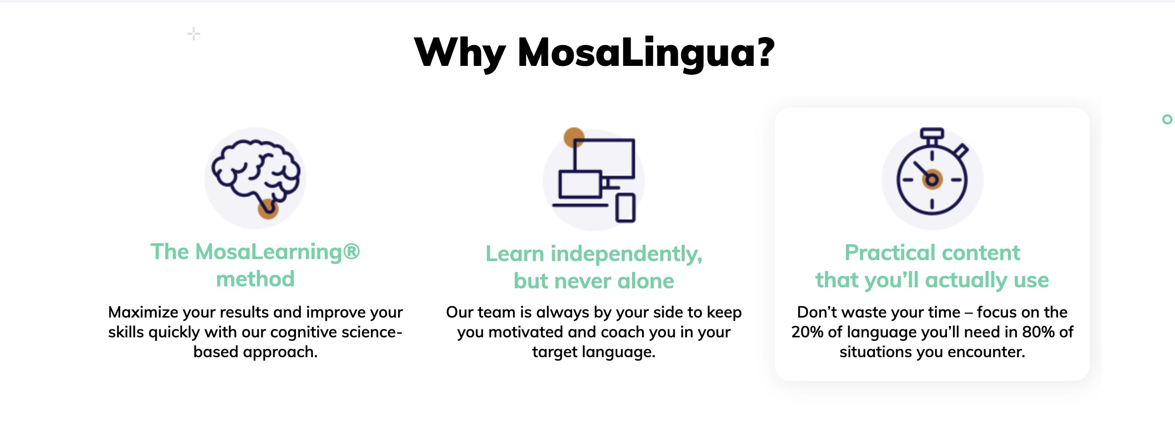 MosaLingua é uma plataforma online projetada com o objetivo de ajudar-te a aprender idiomas de uma maneira fácil e efetiva.
