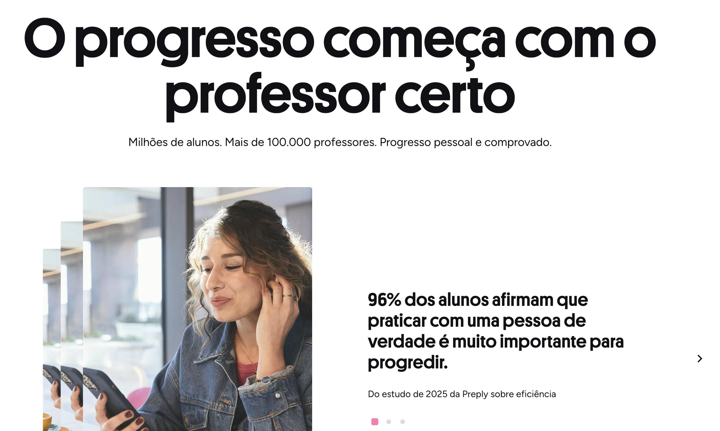 Em poucas palavras, a Preply é uma plataforma educacional on-line, usada para pesquisar e entrar em contato com professores particulares de idiomas.