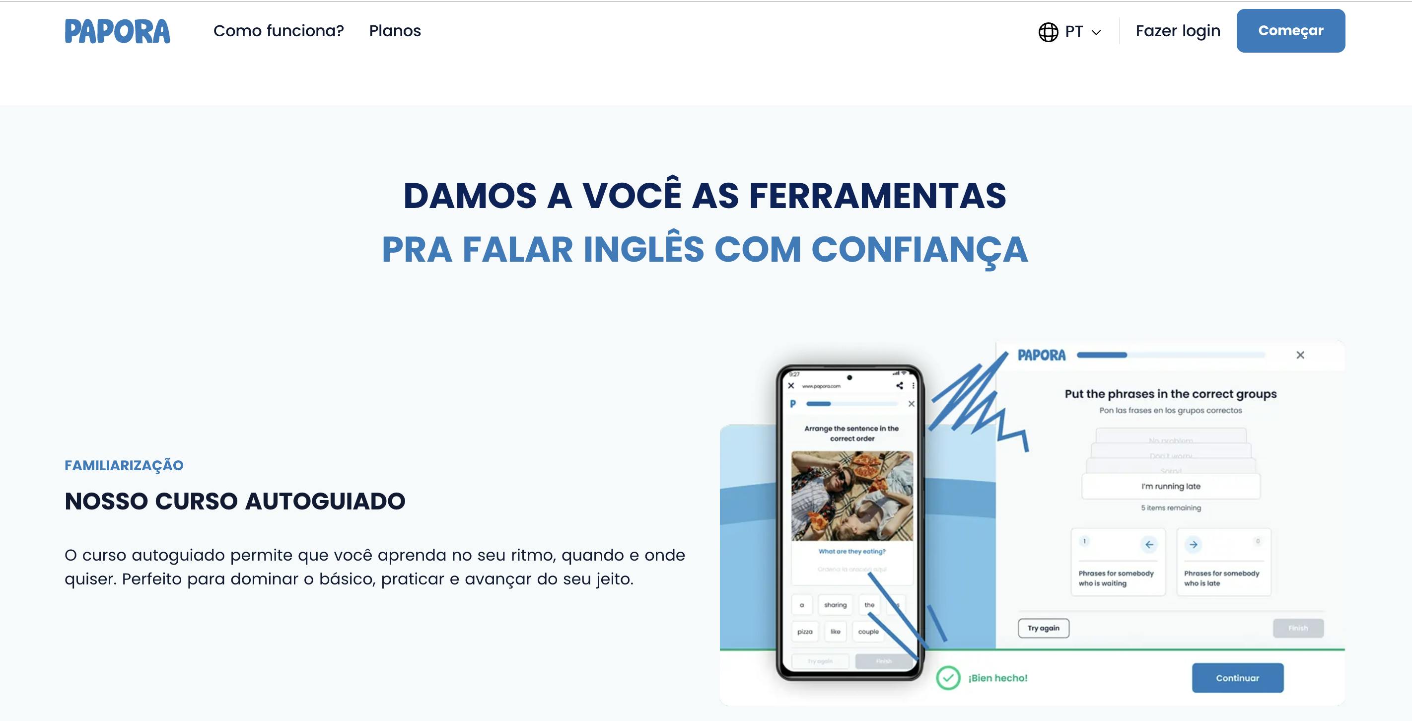 Atualmente, estudar 100% com um livro didático não é o mais recomendado, o melhor serão cursos como Papora, que, com situações cotidianas e um método divertido e dinâmico, ensinam gramática, audição, escrita e fala.