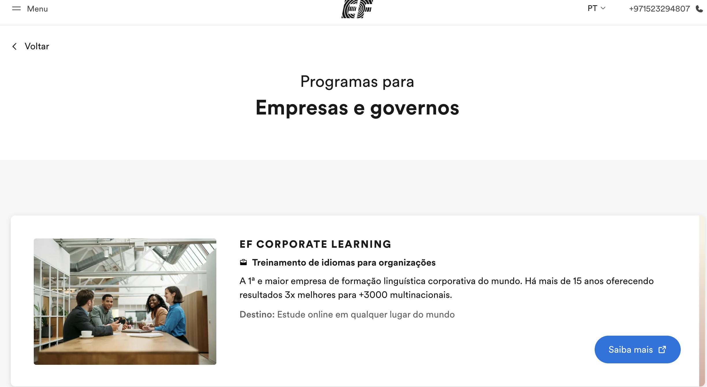 - Vantagem: O lado positivo é que a EF oferece diferentes modalidades, dando a você a oportunidade de estudar online, presencialmente e com cursos imersivos no exterior.