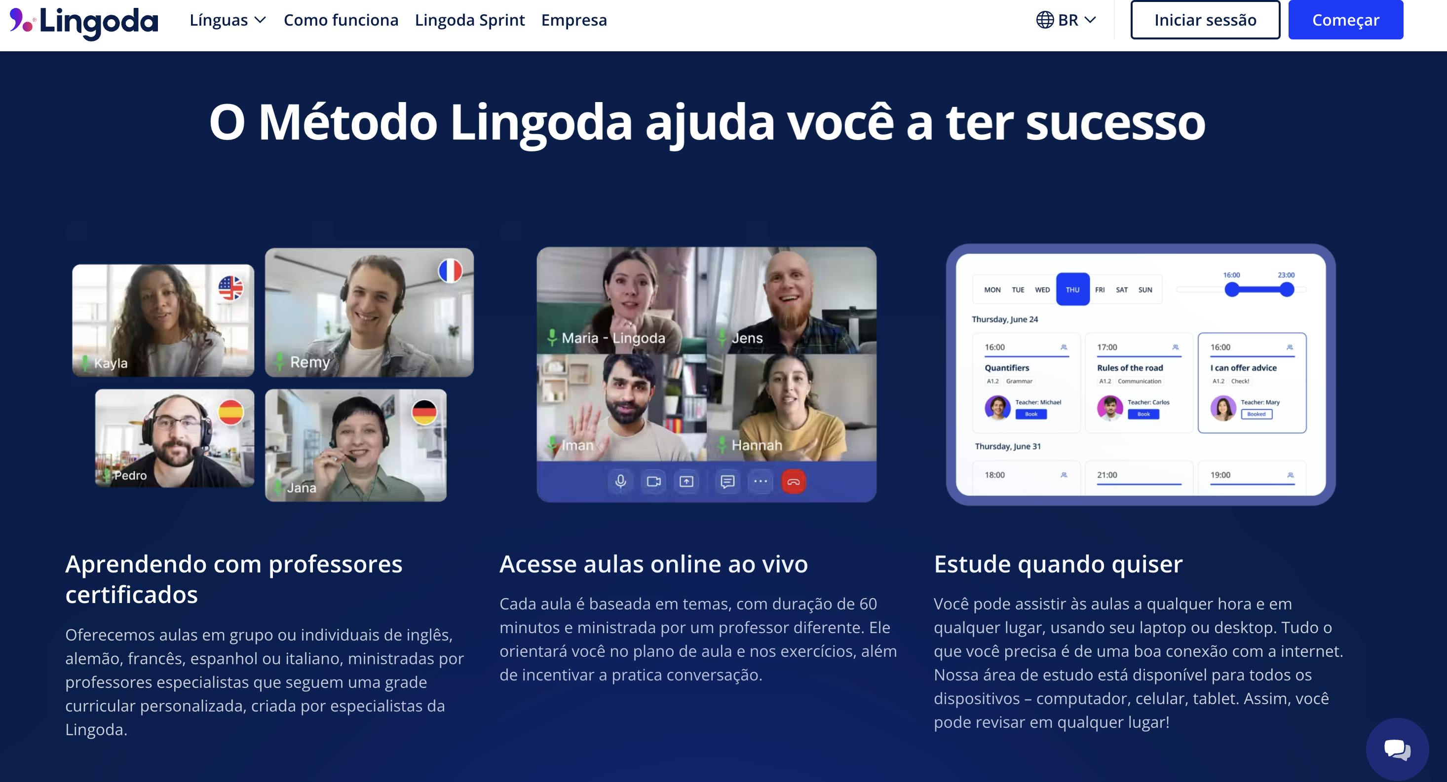 - Vantagem: Uma das grandes vantagens dos cursos da Lingoda é contar com professores nativos que ensinam em um ambiente imersivo por meio de conversas reais e contextualizadas.
