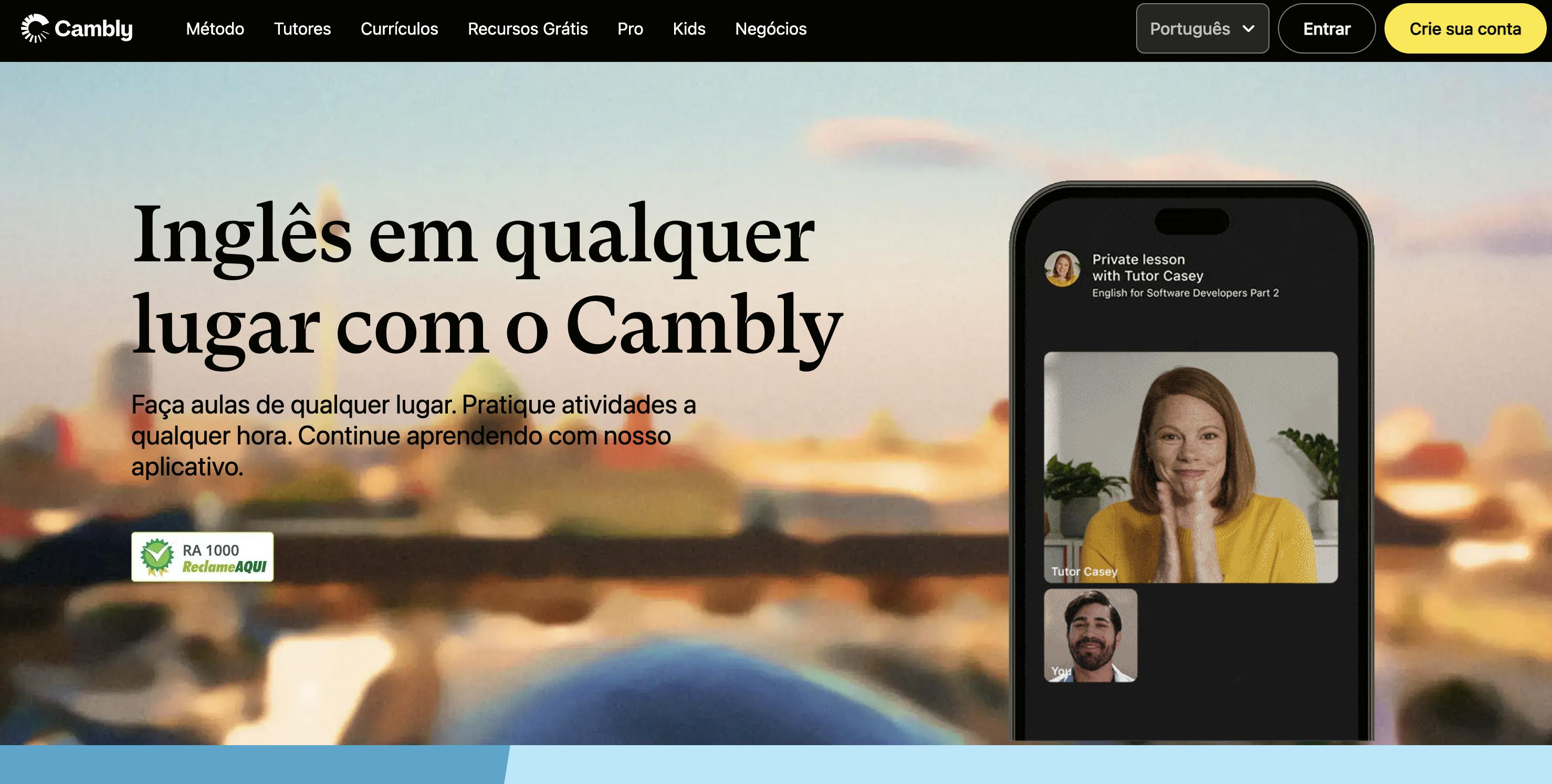 Cambly é um site e aplicativo móvel que você pode utilizar para encontrar professores de inglês em qualquer lugar do mundo instantaneamente e fazer aulas sobre os temas que mais te interessam.