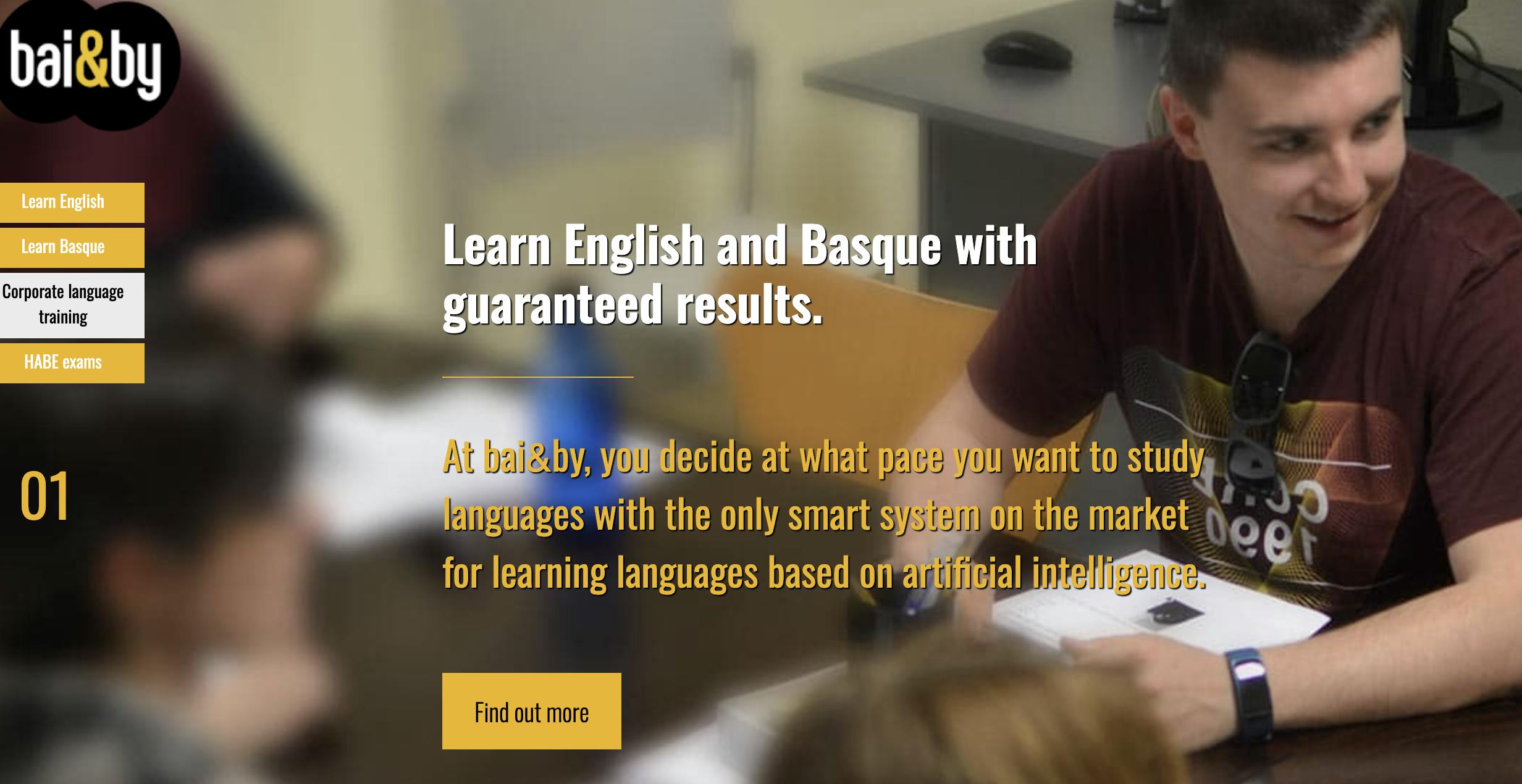 Bay&By é uma escola de inglês online que promete ter um método inovador e único que busca ensinar idiomas como inglês e euskera com base em inteligência artificial e personalizado de acordo com as necessidades do aluno.