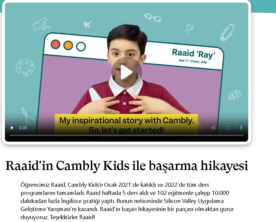 Bu şirket, çocuklarınızın küçük yaşlardan itibaren ikinci bir dil konuşabilmesinin önemini anlıyor. Bu nedenle Cambly, 4 ila 15 yaş arası çocuklara İngilizce dersleri vermek için özel bir bölüm oluşturdu.