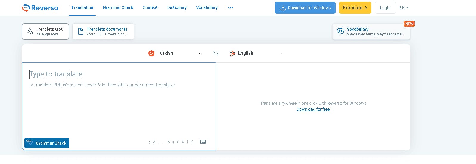 Reverso, başka bir dil öğrenmeniz için milyonlarca ifade ve metni çevirme imkanı sunar. Her kelimenin bağlamını gösteren, İngilizce öğrenmek için pratik bir rehber niteliğindedir.