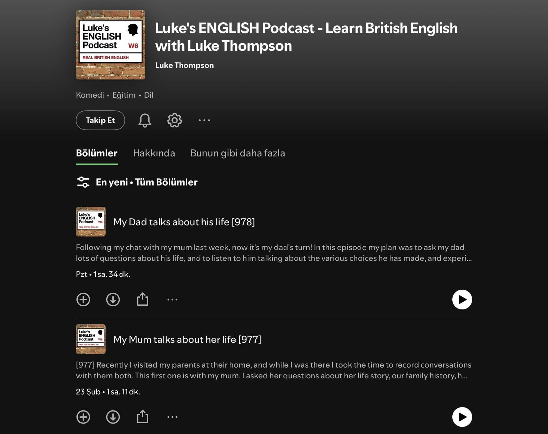 Buradaki amaç, bilgi toplayıp kulağınızı geliştirebilmenizdir. Dinlerken not alabileceğiniz mükemmel bir podcast. Spotify'da mevcuttur.