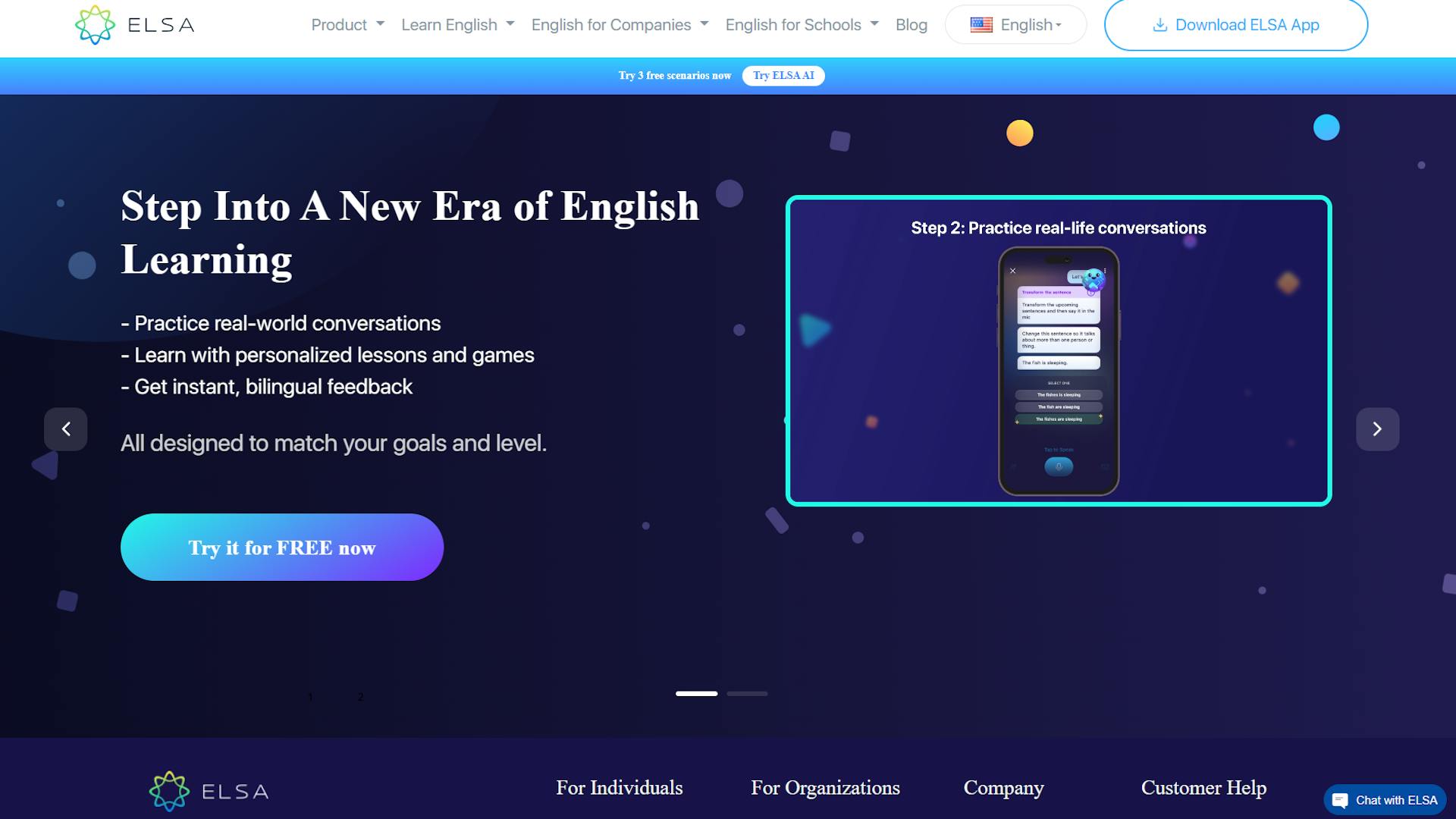 Bu uygulama, çalışanlarını eğitmek isteyen şirketler için İngilizce eğitim hizmetlerini sunar. ELSA, her çalışana yapay zekâ destekli bir İngilizce eğitmeni olarak hizmet verir ve çalışanların 3 ay içinde ders olmadan İngilizcelerini geliştirebileceğini ileri sürer.