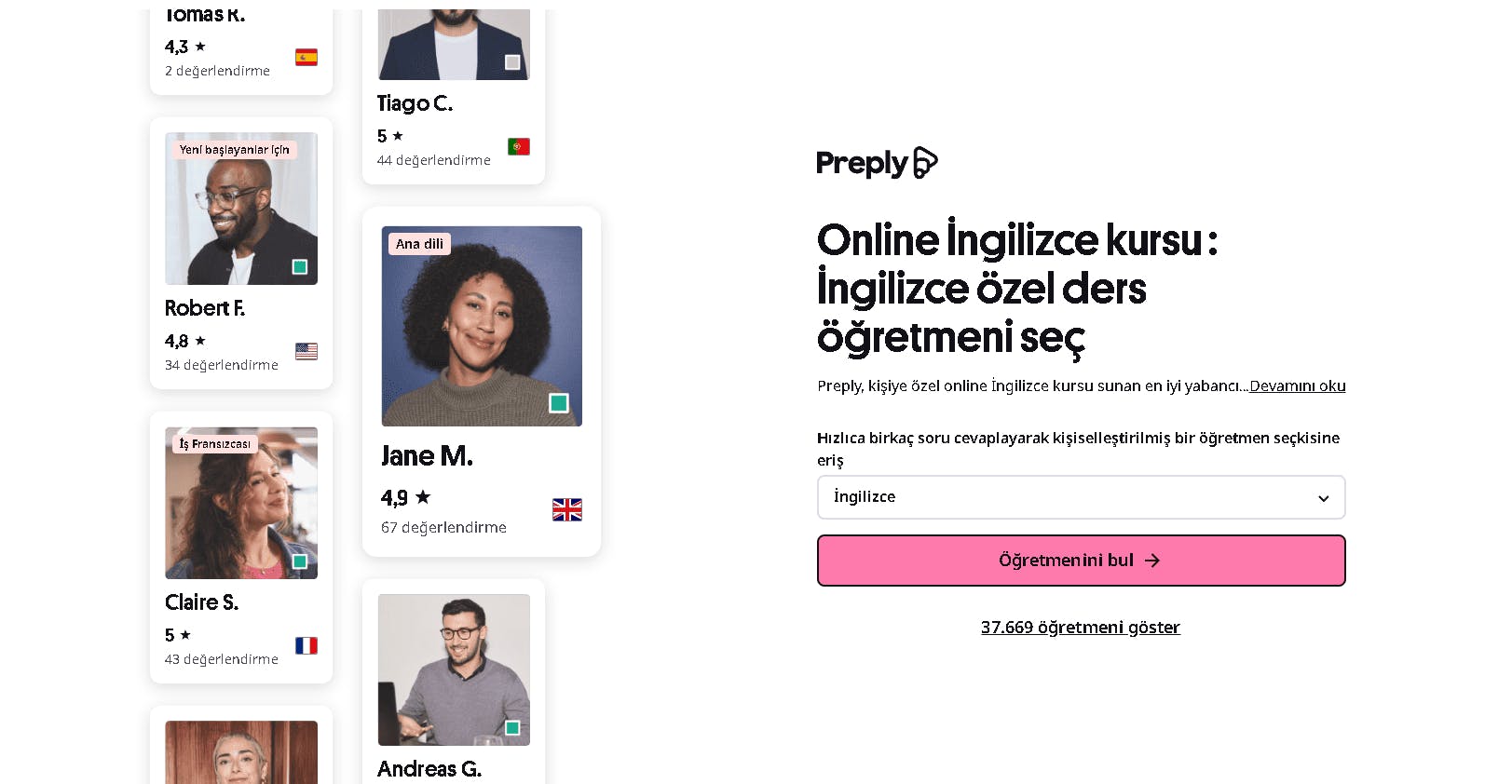 Preply, özel dil öğretmenlerini bulmak ve onlarla iletişime geçmek için kullanılan bir çevrimiçi eğitim platformudur.
