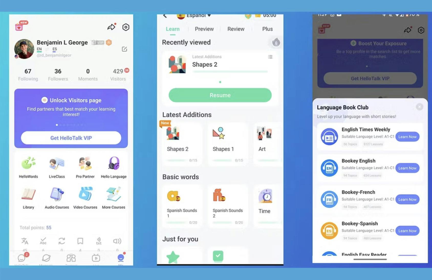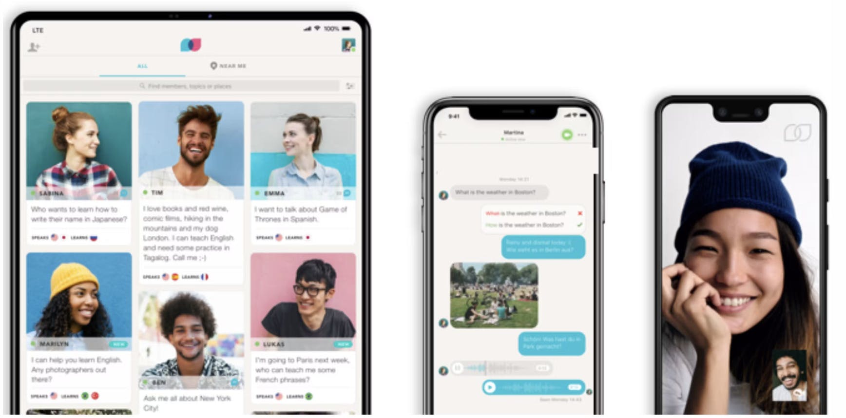 Uygulama içinde ses, video, görüntü ve metin aracılığıyla ana dili İngilizce olan kişilerle mesaj paylaşmanıza olanak tanıyan bir sosyal ağdır. Konuşmayı, özgüveni geliştirmek ve kelime dağarcığına aşina olmak için idealdir.