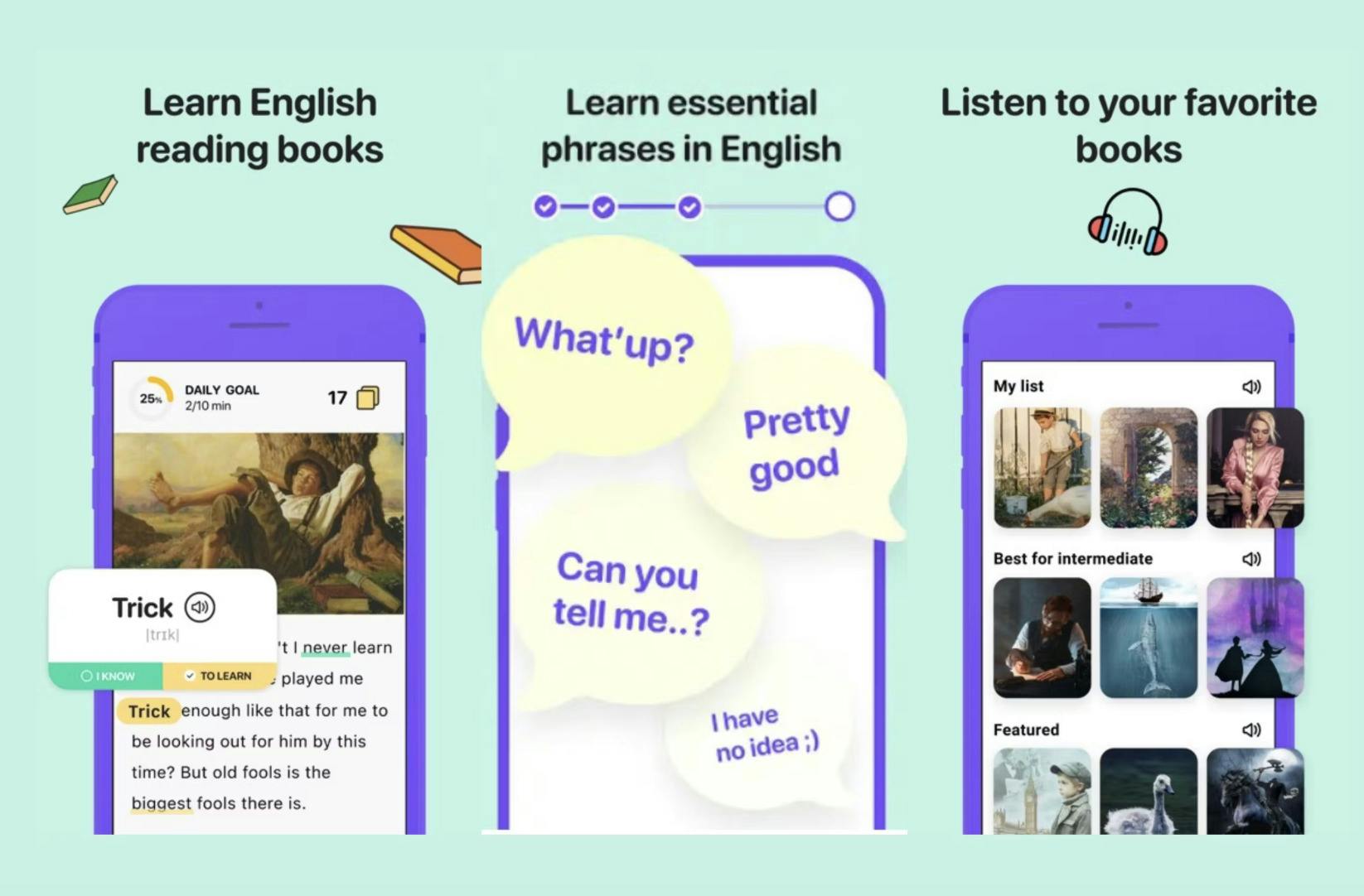 Bu uygulamada kullanıcılar ücretsiz İngilizce hikayeler okuyabilir ve ayrıca yeni kelimeler keşfetmek için belirli kelimelere çeviriler yapabilirler.