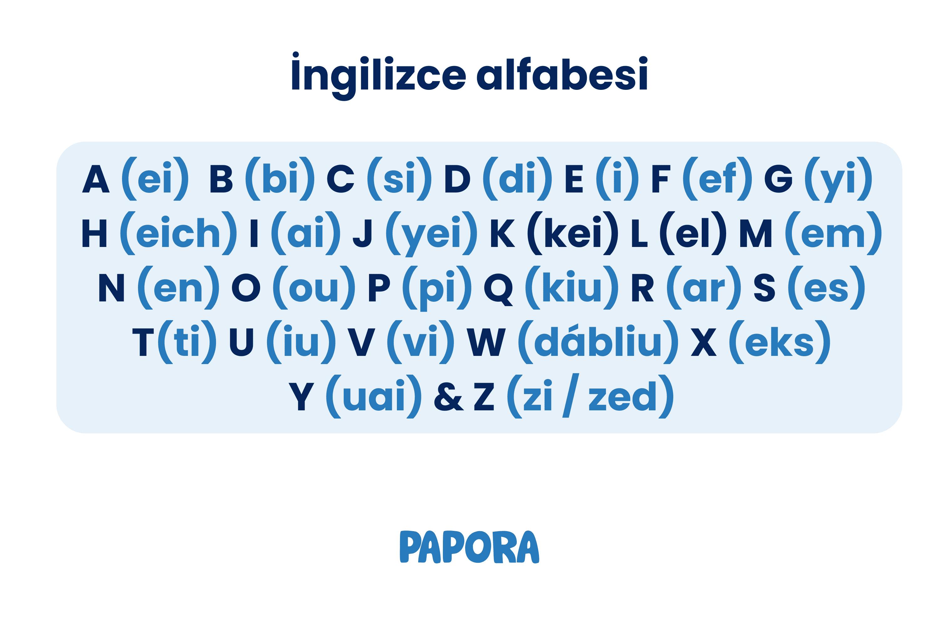 İngilizce alfabesinin telaffuzu, aynı harfleri içermesine rağmen, Türkçe’deki telaffuzundan çok farklıdır. Fonetiği farklıdır ve hatta sesli harfleri birden fazla ses çıkarır. Papora'nın canlı derslerinde pratik yaparak bunu içselleştirin.