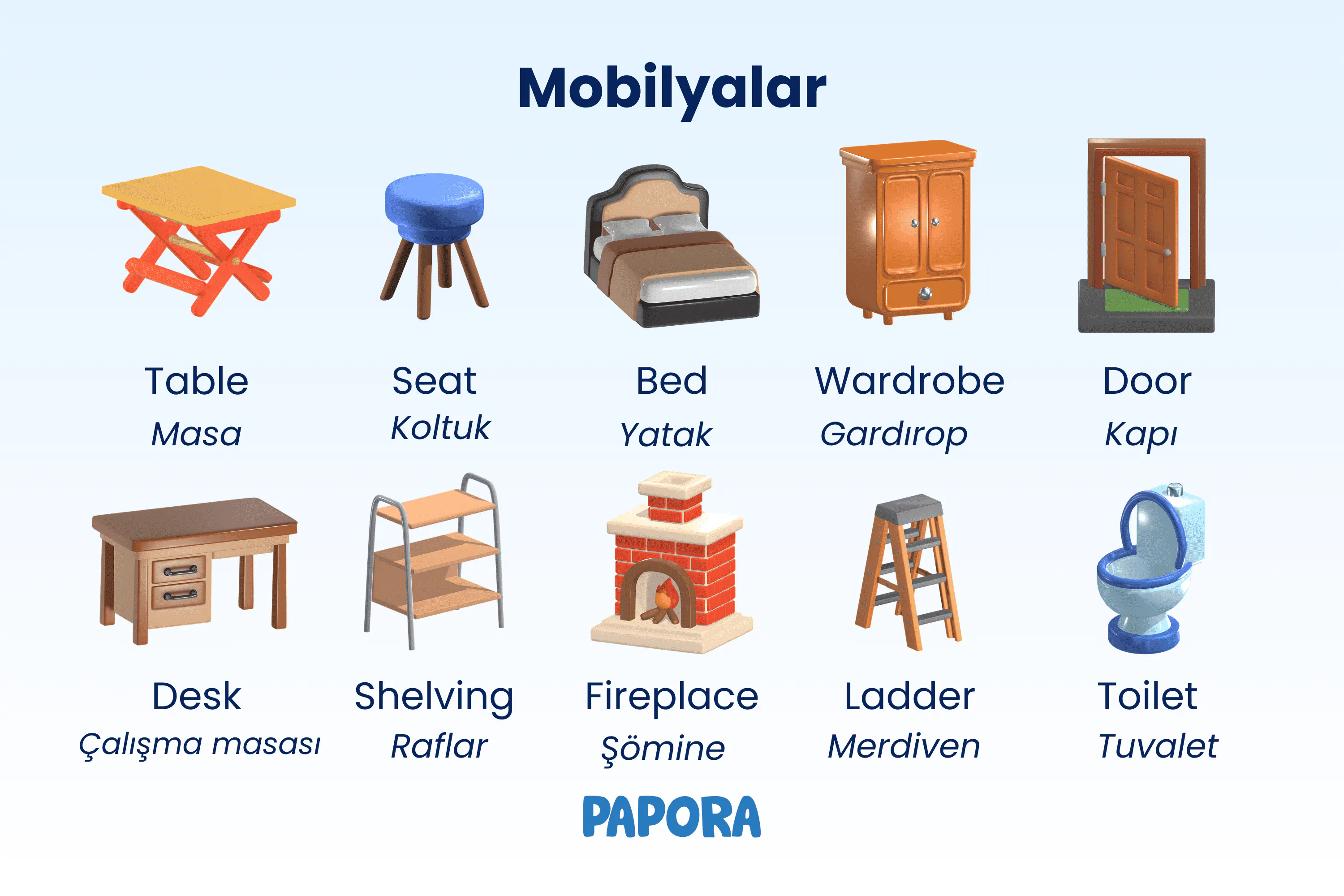 | İNGİLİZCE MOBİLYALAR | TÜRKÇE MOBİLYALAR |