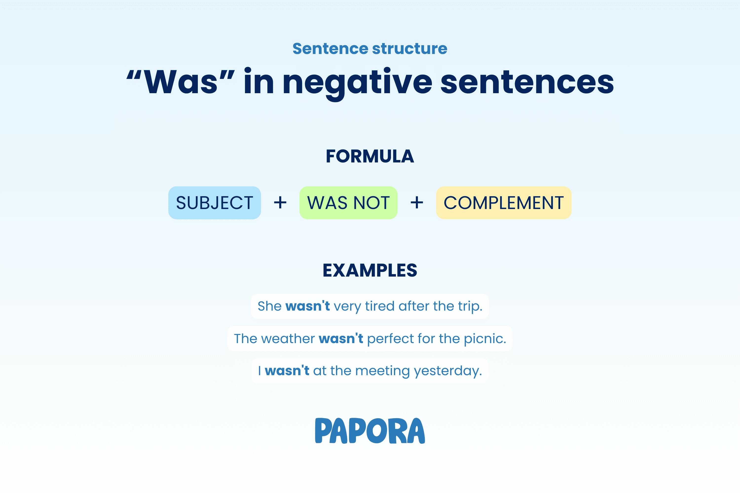 When we refer to negative sentences, it follows the same grammatical pattern as "was". Its formula is: