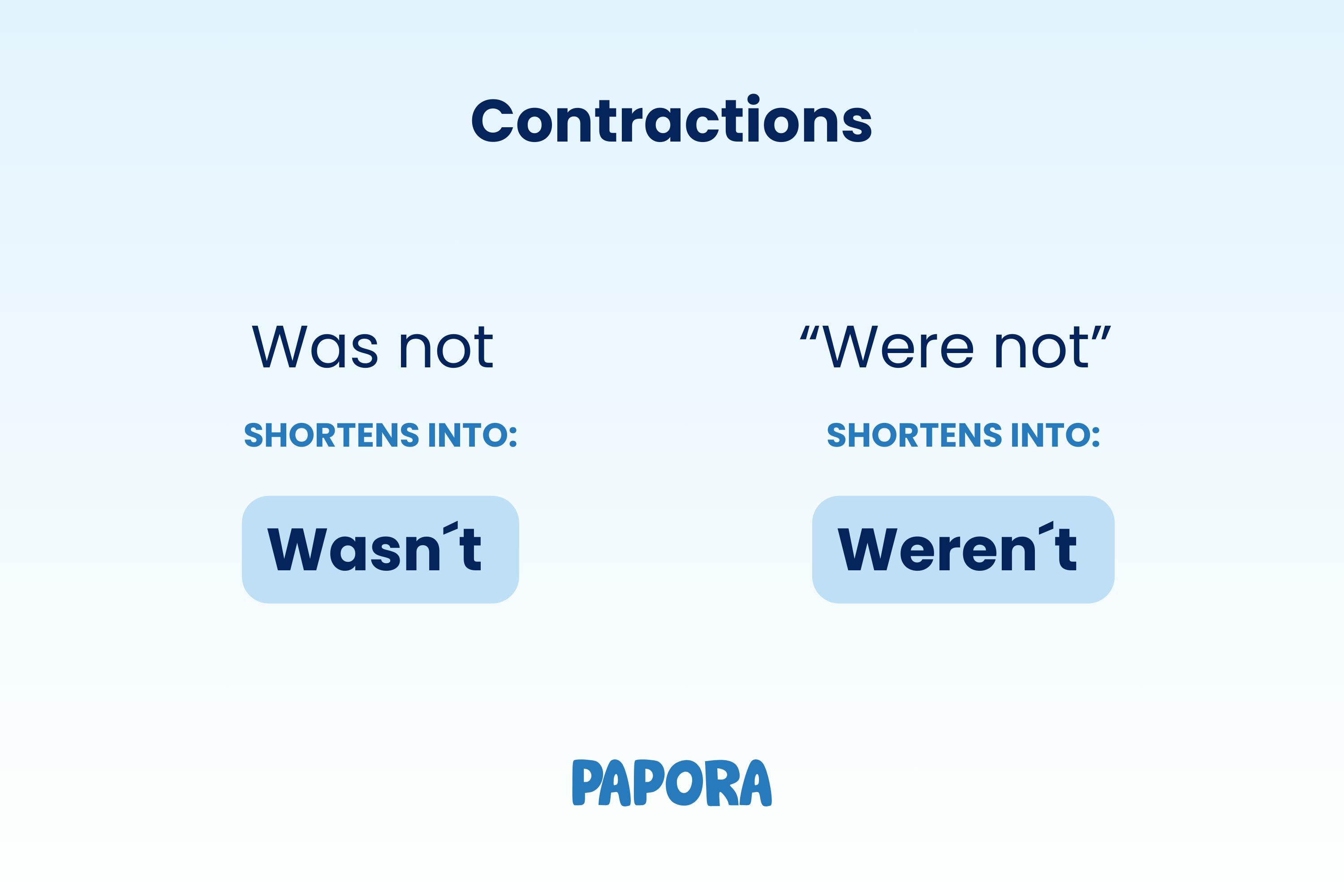 However, when the sentence is negative, the contraction is made between was and not and were and not: